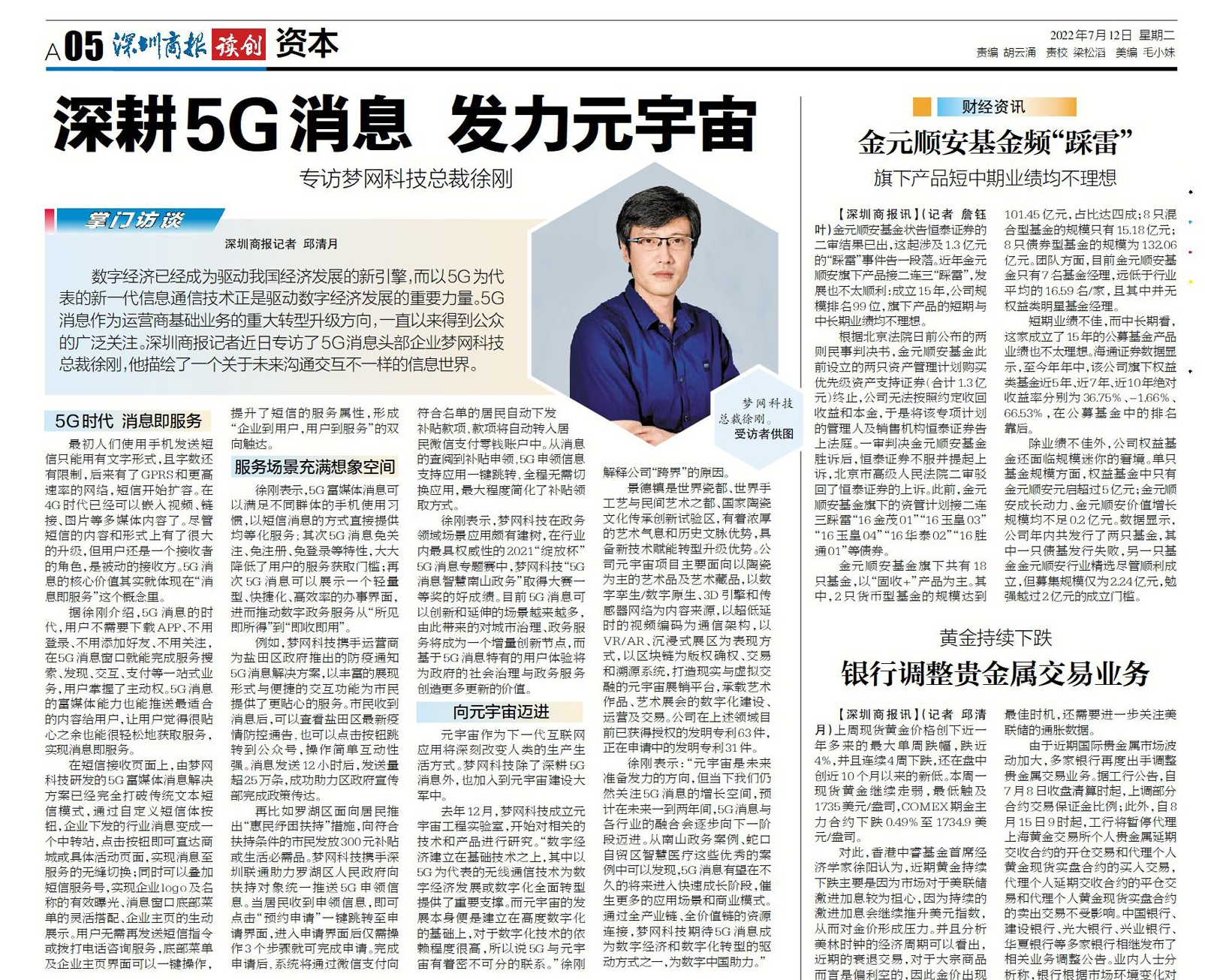 深圳商报专访 | 金年会诚信至上科技总裁徐刚:开启5G消息第二增长曲线