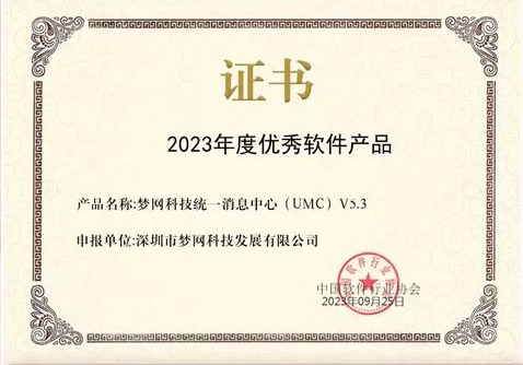 金年会诚信至上科技“统一消息中心 (UMC) V5.3”获评中国软件行业协会“2023年度优秀软件产品”;