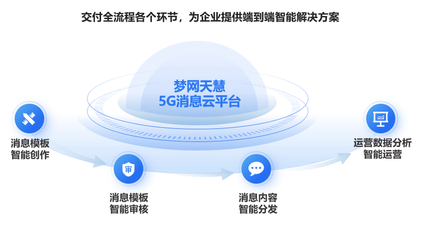 金年会诚信至上天慧5G消息云平台致力于全流程智能交付,深度融入各个环节,为企业给予端到端智能解决方案。平台支持消息模板智能创作,高效生成各类消息模板;具备消息模板智能审核功能,自动审核确保模板规范;实现消息内容智能分发,依据规则精准触达目标用户;还涵盖运营数据分析与智能运营,深度剖析数据以智能优化策略,全方位提升消息服务的质量与效率。